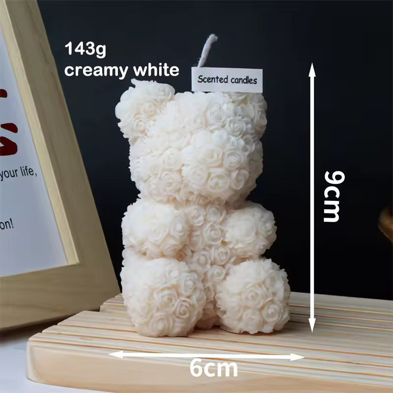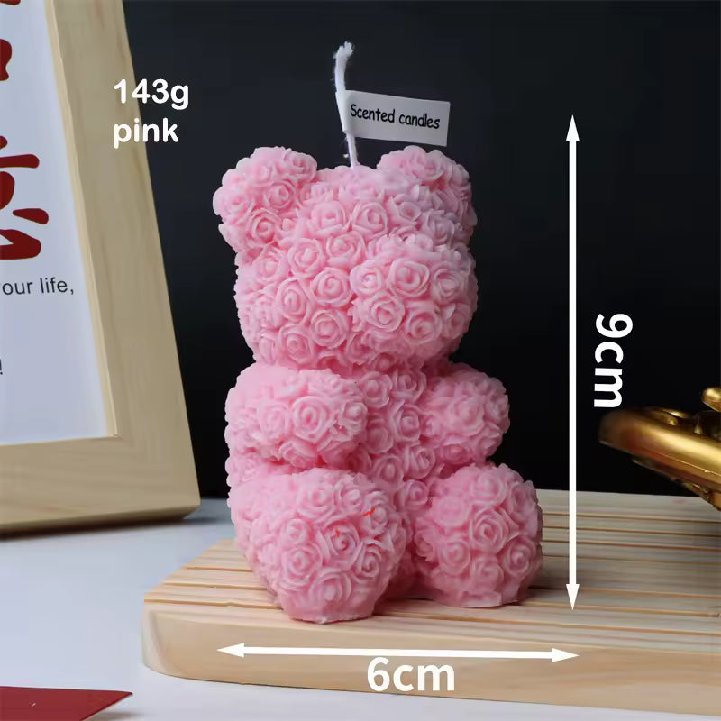 Style : Bougie animalière texturée de roses (style "Rose Bear").